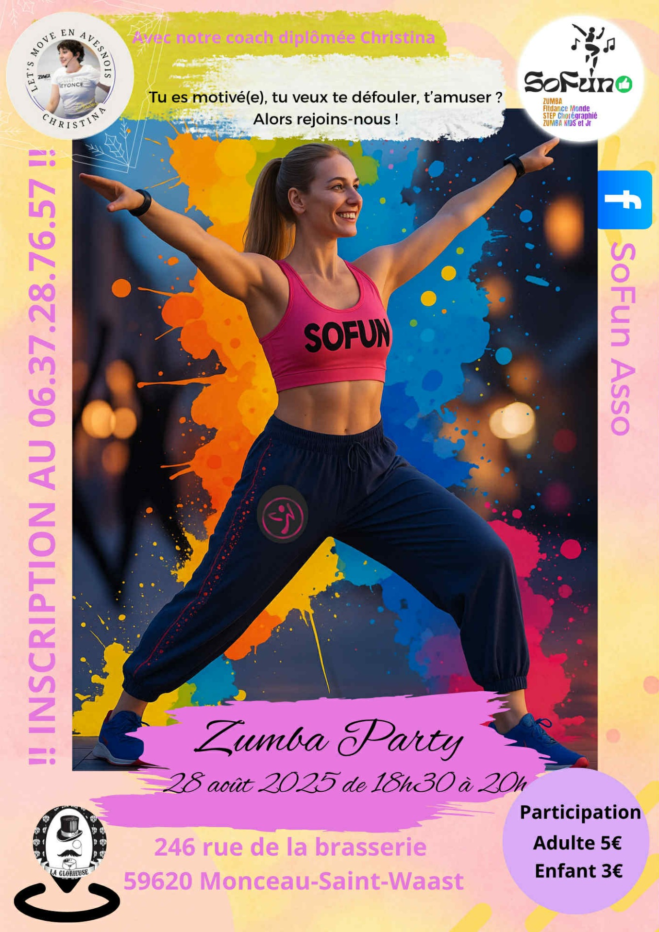 SoFun est une association de danse située à Monceau-Saint-Waast, spécialisée dans les cours de Zumba, Step et Fit Dance. Notre coach passionnée vous fera découvrir des chorégraphies dynamiques au travers de differents pays et vous aidera à atteindre vos objectifs de forme physique tout en vous amusant. Rejoignez-nous pour une expérience de danse amusante et énergisante !